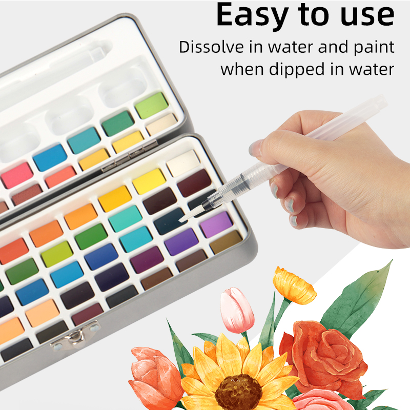 Du kan være sikker på at købe 72 farver akvarelfarvesæt med gaveæske fra vores fabrik. Rejse-akvarelsæt Alt-i-én akvarelsæt med pensel. Let og robust metalboks, der gør den perfekt til maling på farten. Du kan male absolut overalt. indendørs, landskab, park, strand, have og by.
