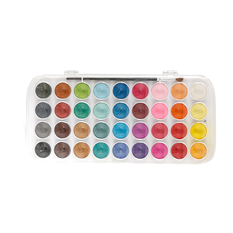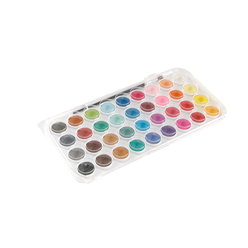 Overkommelig og professionel, den bærbare akvarelpalet er et bærbart kunstsæt, der er stilfuldt og praktisk. Watercolor Palette Kit er en smuk, kompakt og bærbar palet med 36 farver. Det gennemsigtige plastikhus beskytter din samling af pensler, mens du rejser.