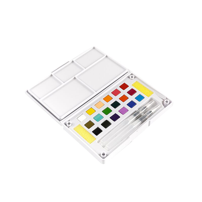 Højkvalitets akvarelpapir med 18 farver til rejser, uddannelse og sjov. Inkluderer en højkvalitets penselpen til hurtig og nem farvepåføring på farten eller hvor som helst